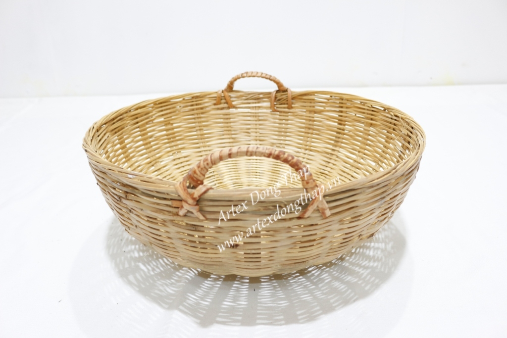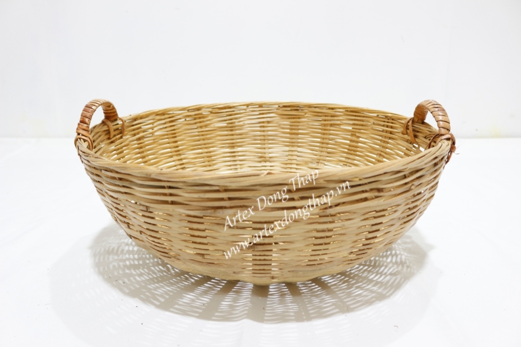 Single round bamboo tray. Unframe. Normal weave. Natural color.