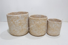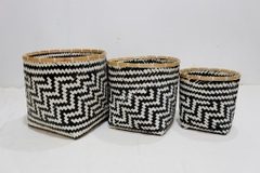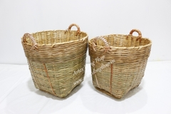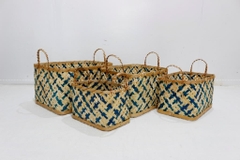 Set of 4 rect bamboo baskets, unframe, with half round handles, natural mix blue color.
