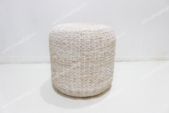 Description: Round water hyacinth stool, unframe, fish bone weave, wash white color