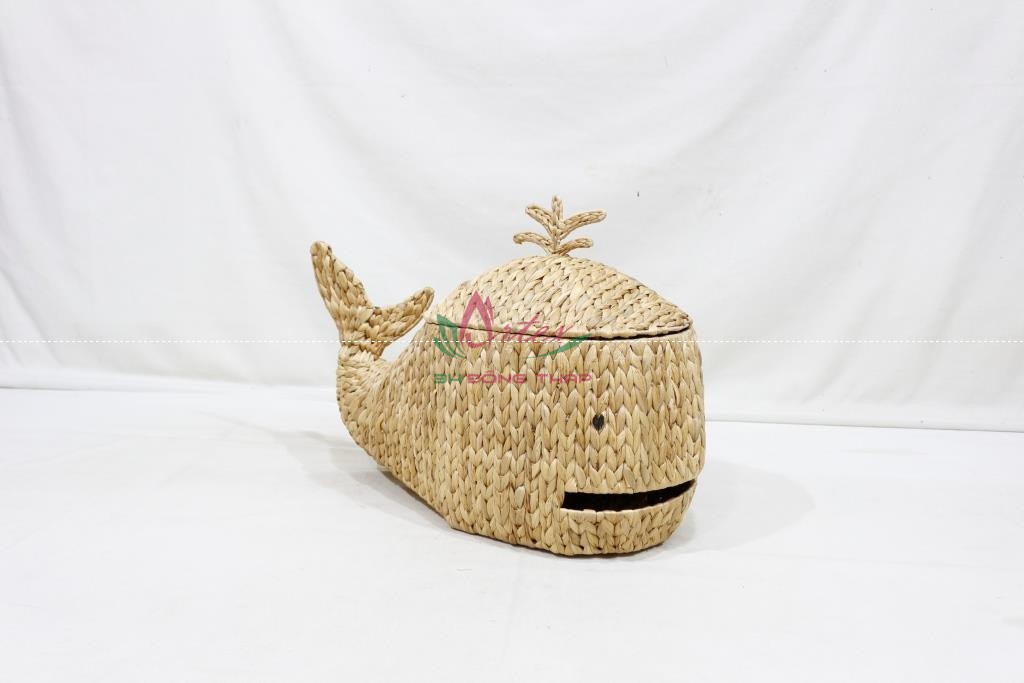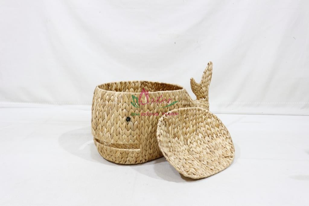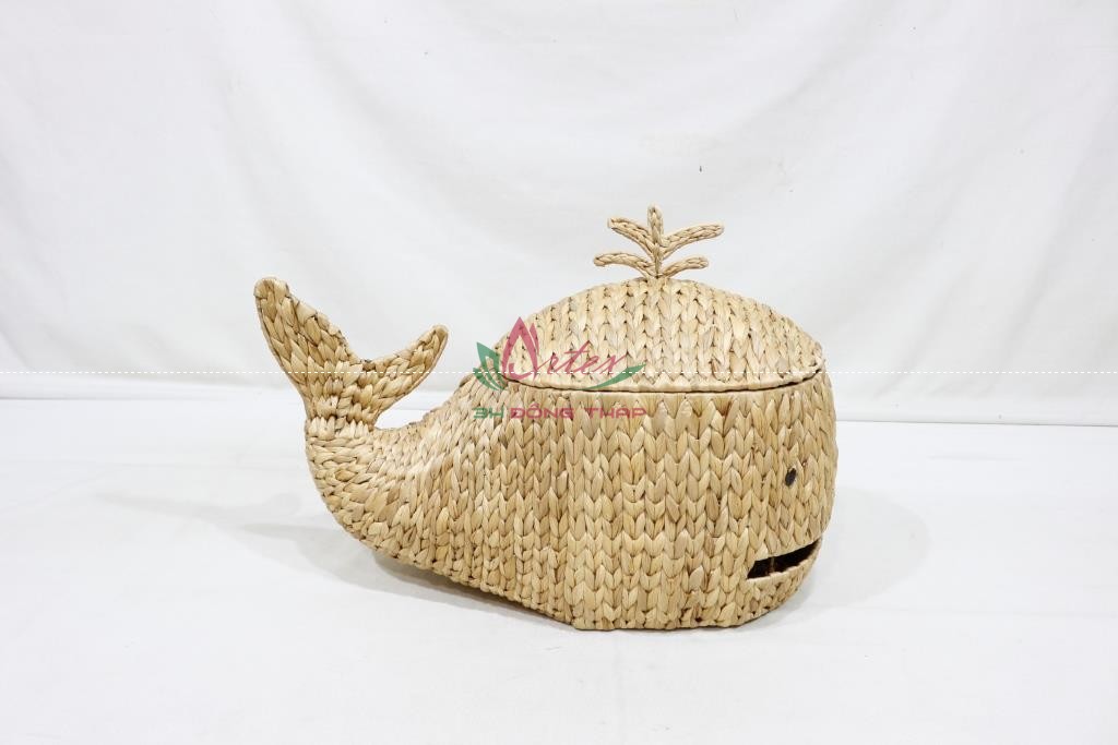 Artex Dong Thap-Handwoven Whale Shaped Basket – Natural Water Hyacinth Storage Bin-SD10773A-1NA