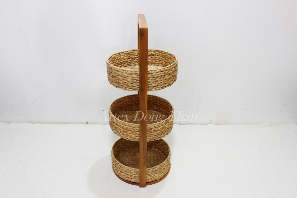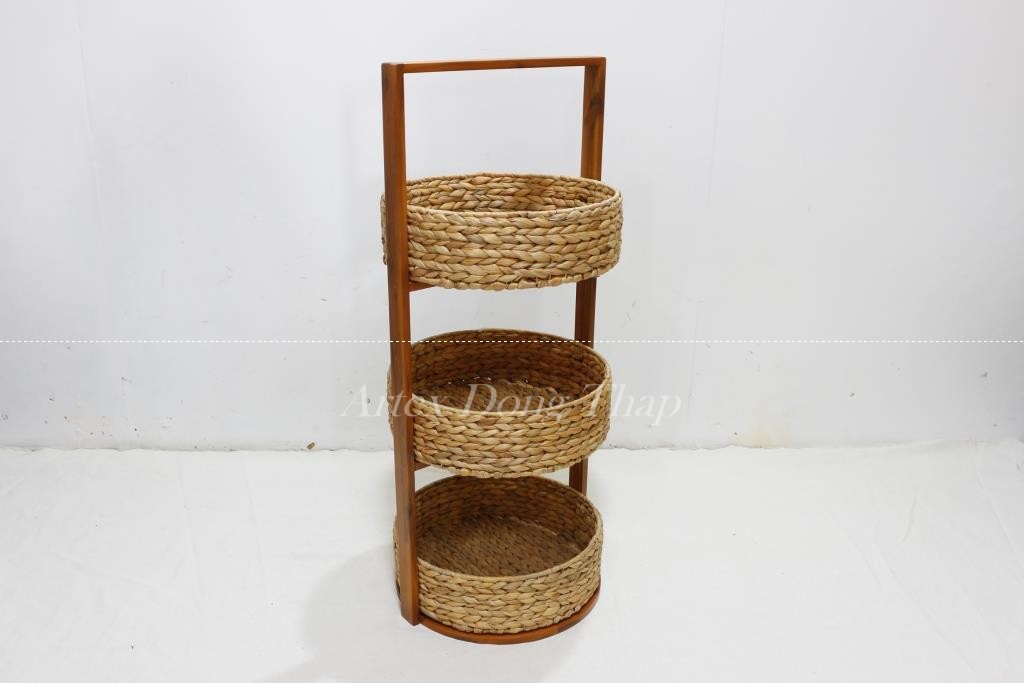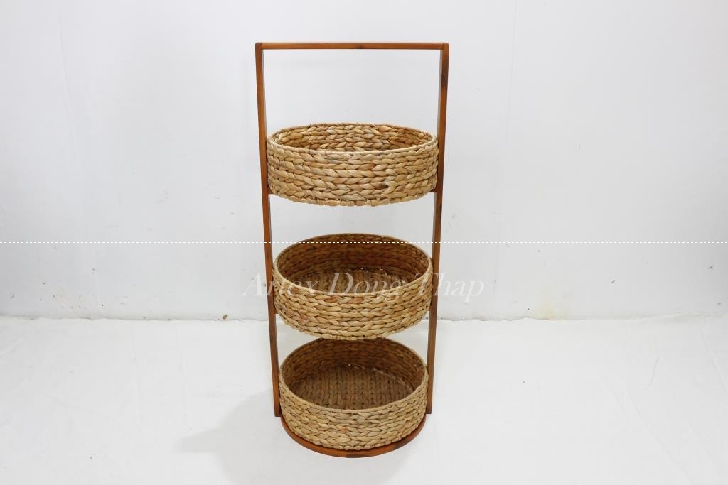Wooden Magazine rack in natural color with 3 water hyacinth baskets:
