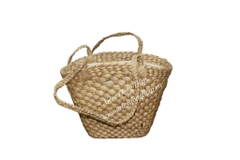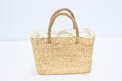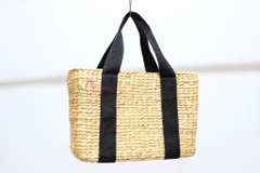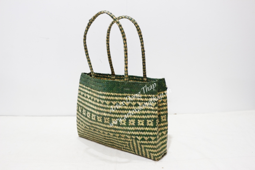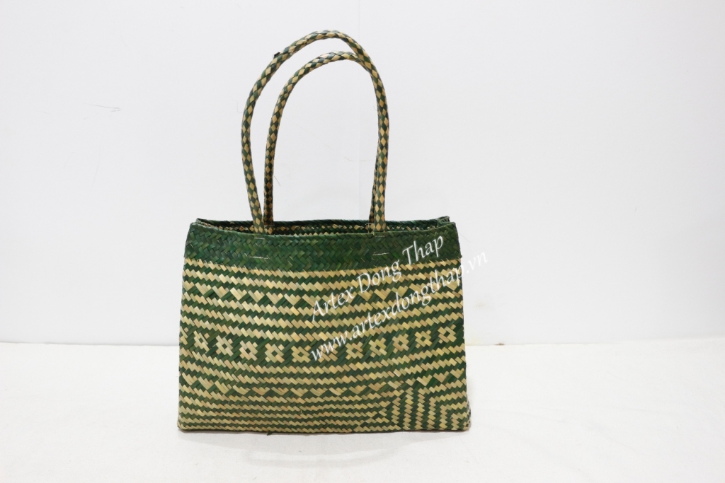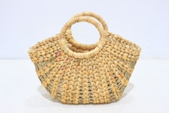 Description: Palm leaf handbag, unframe with semicircular handles, normal weave, mixed color as picture.