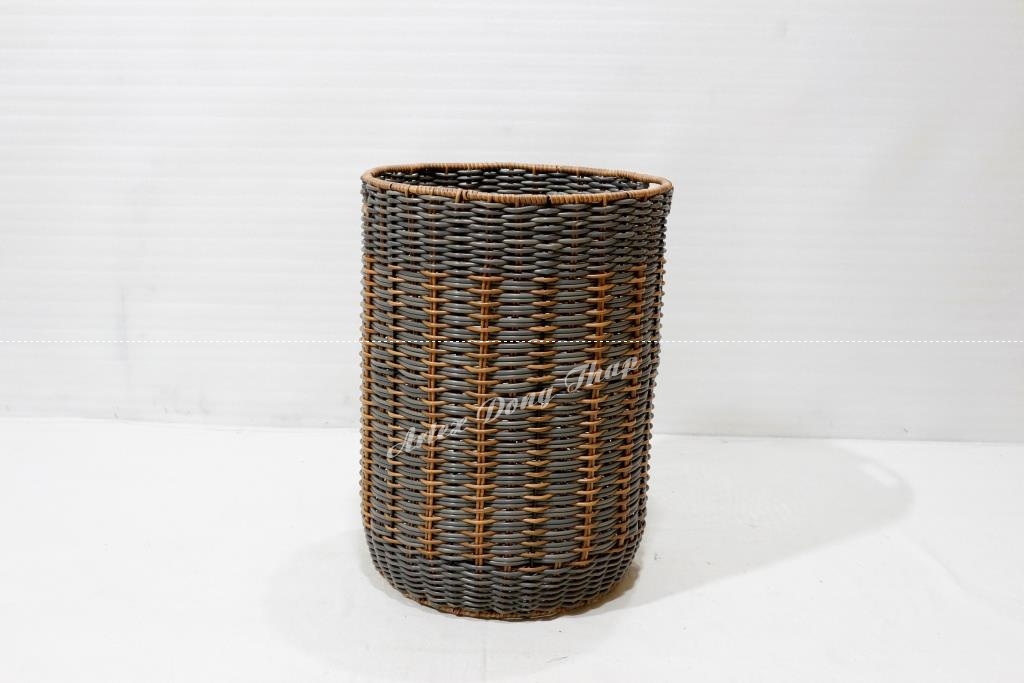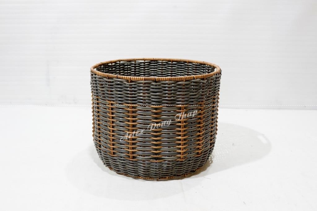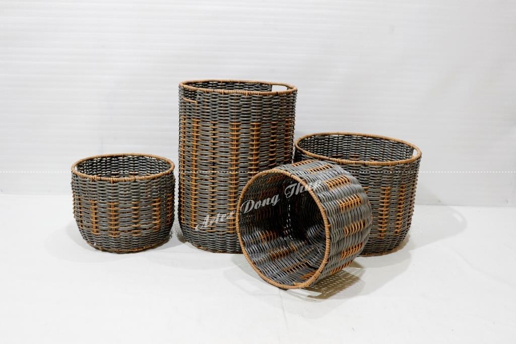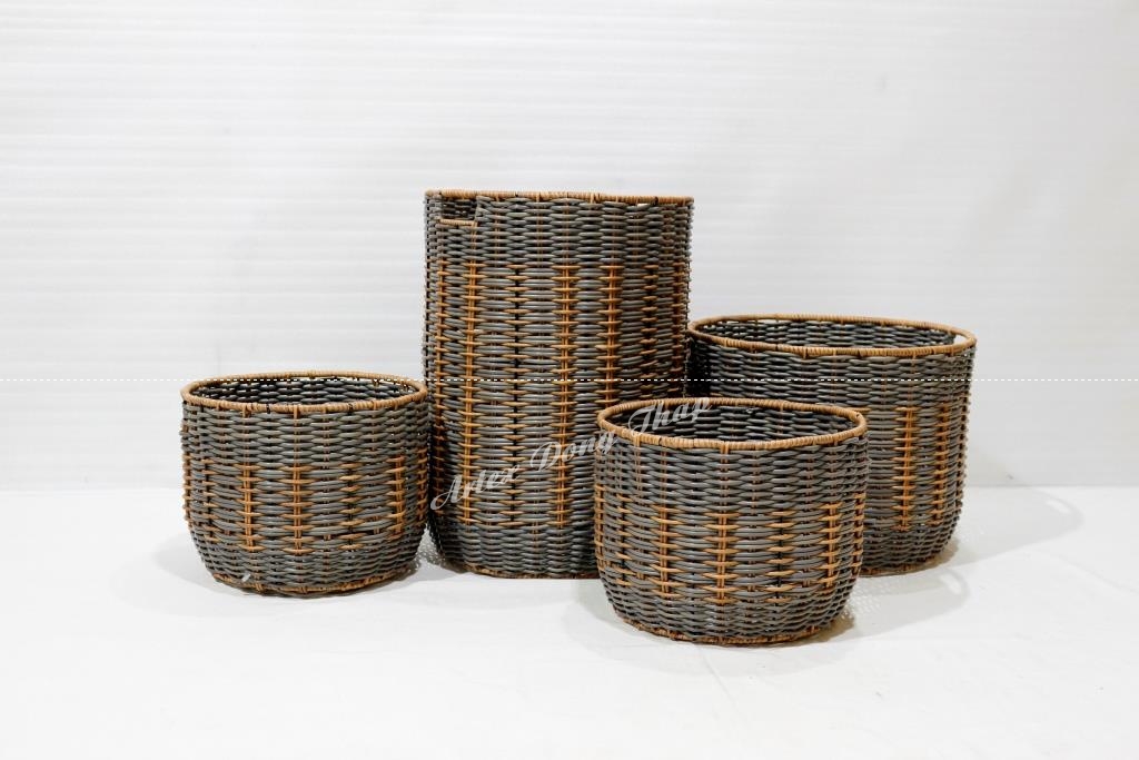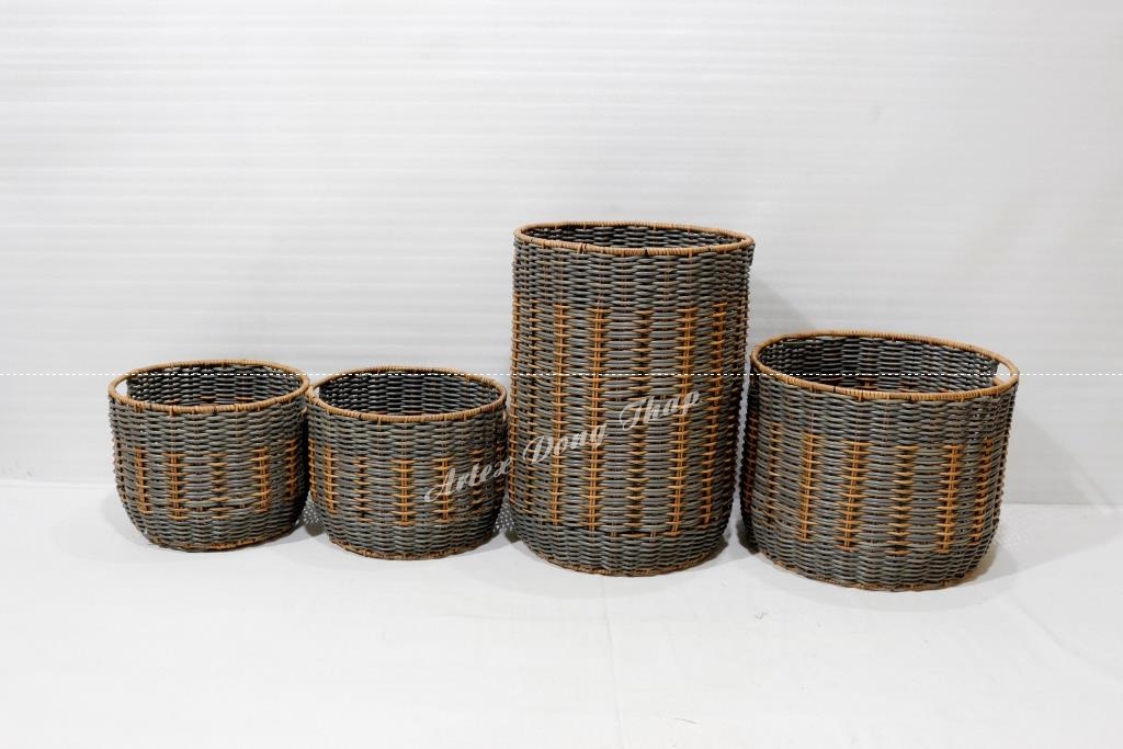 Description: Set of 4 round poly rattan baskets, iron frame with hole handles, normal weave with round wicker, mixed color.