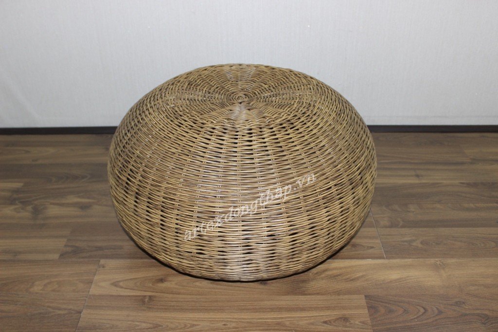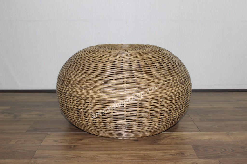 Description: Round poly rattan stool, plump body, tapered bottom, iron frame, 3.5mm round wicker, open bottom, brown color