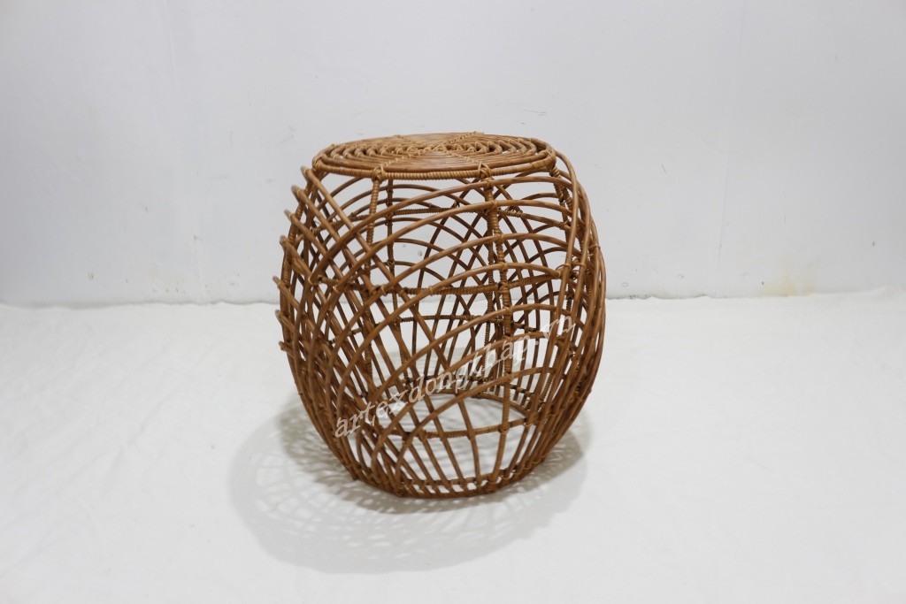 Description: Round poly rattan stool, iron frame, round wicker, open weave, brown color