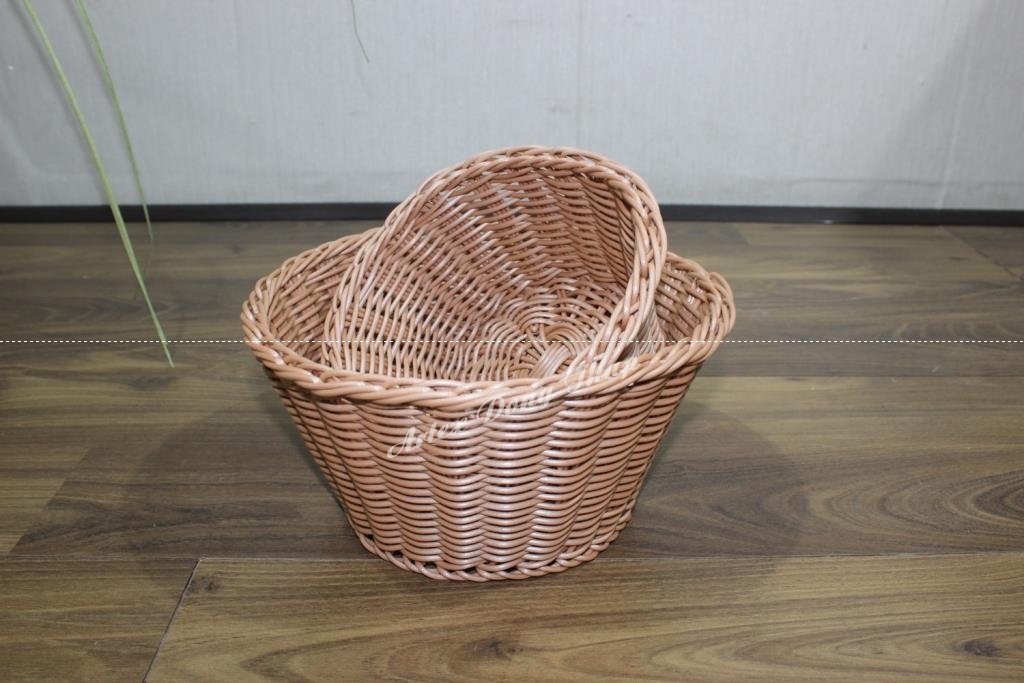 Set of 2 round poly rattan tray, unframe with tapered bottom, normal weave, brown color