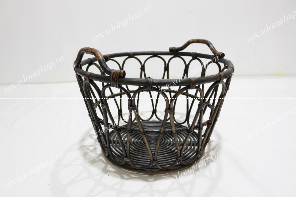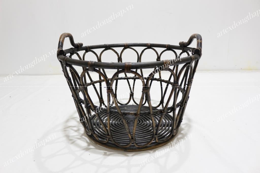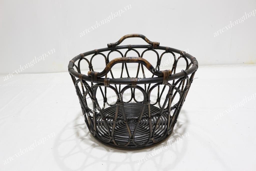 Description: Round rattan basket, unframe with handles, open weave, black color