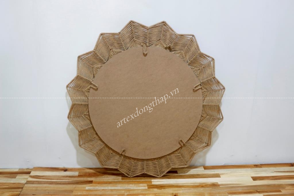 Round Rope hanging mirror, petal shape, open weave, natural color