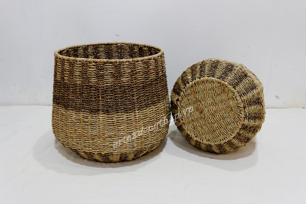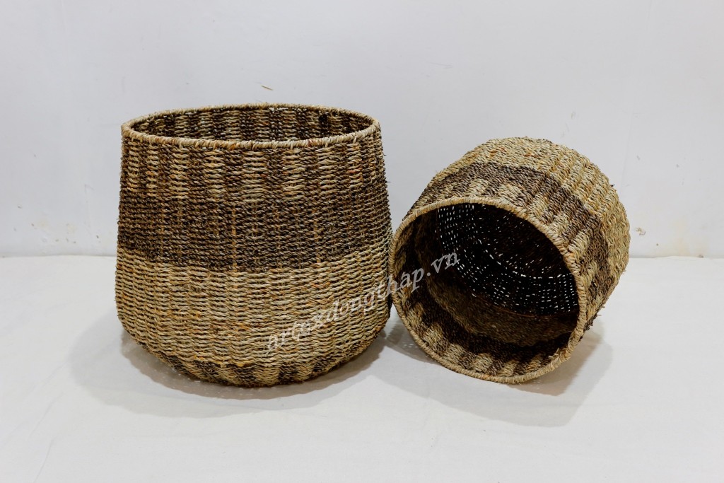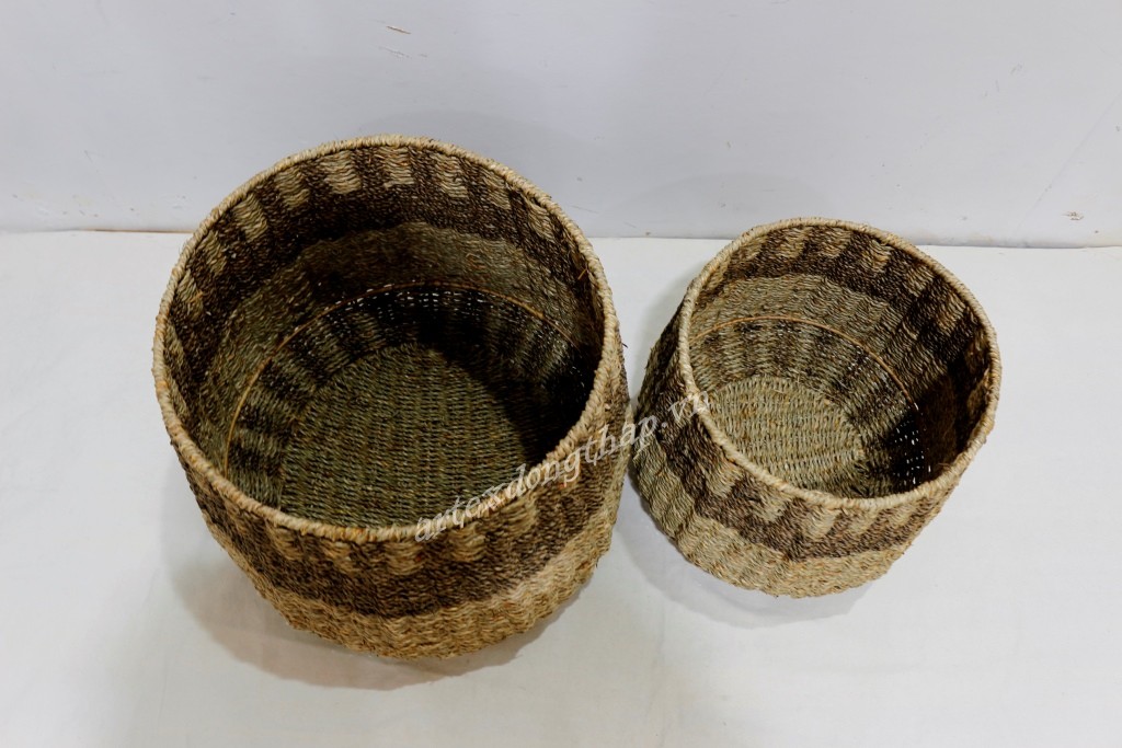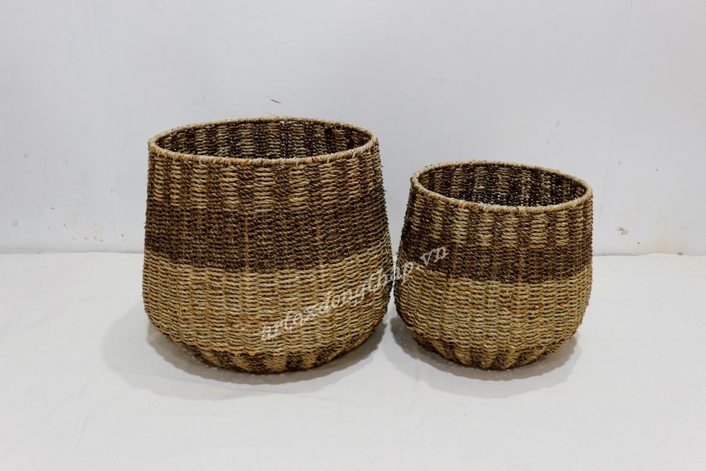 Set of 2 round seagrass baskets, iron frame , normal weave, mix color as picture.