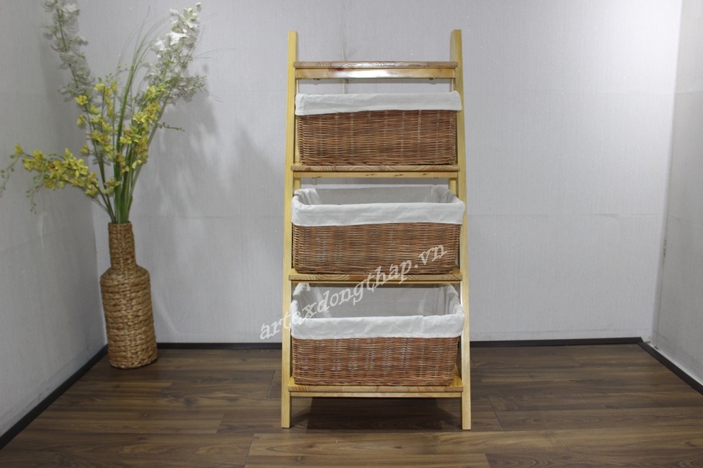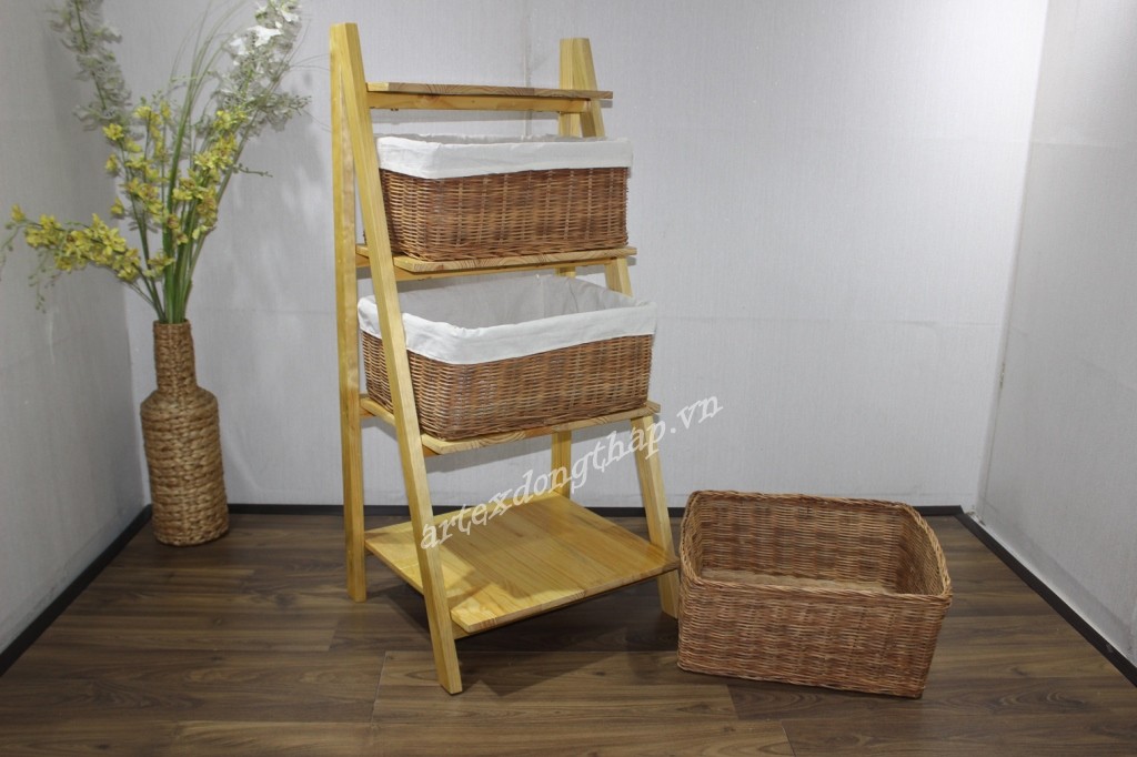3 Tier Magazine Rack (Frame shape as picture): Acacia wood in NATURAL COLOR