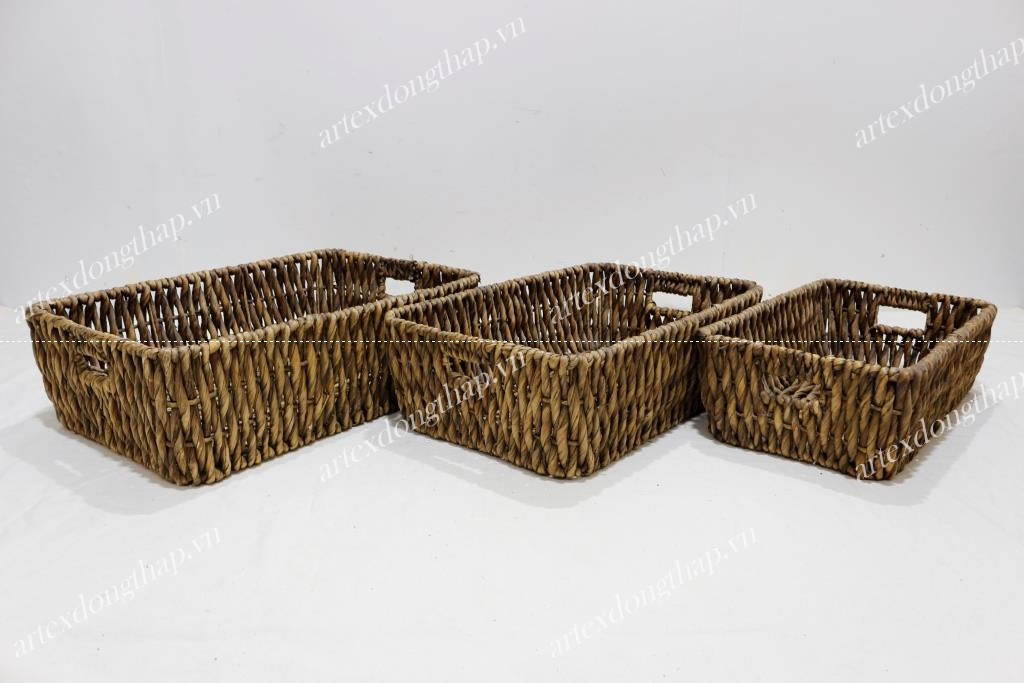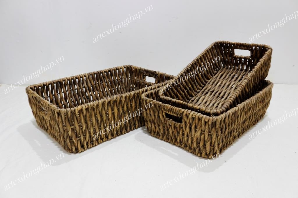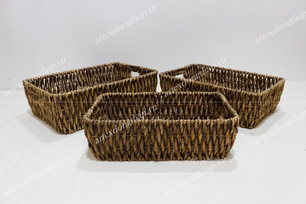 Set of 3 rect water hyacinth baskets