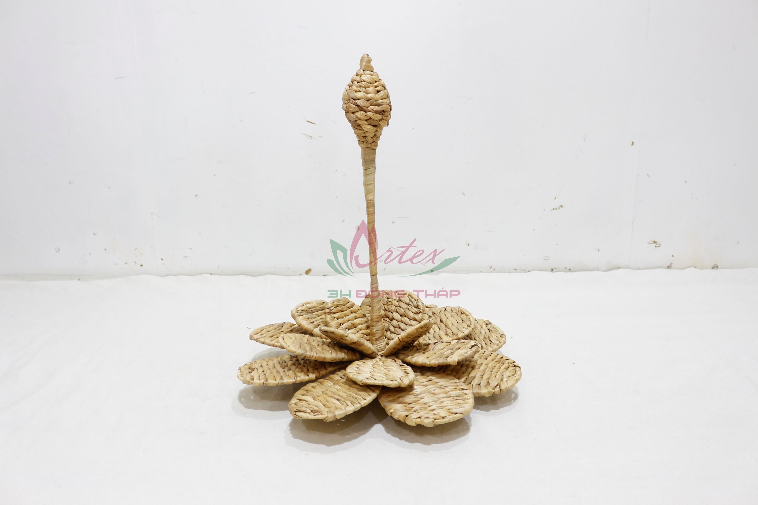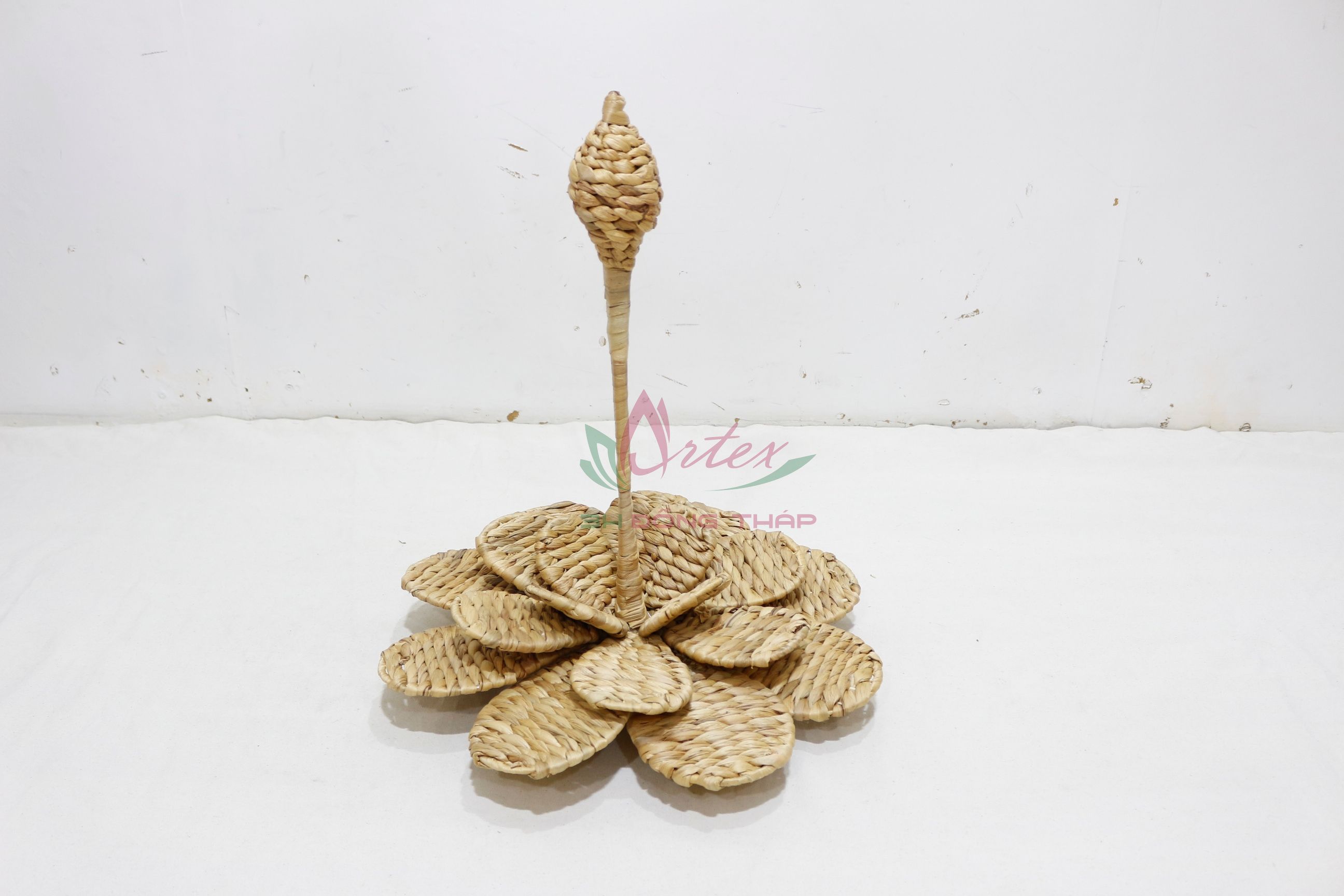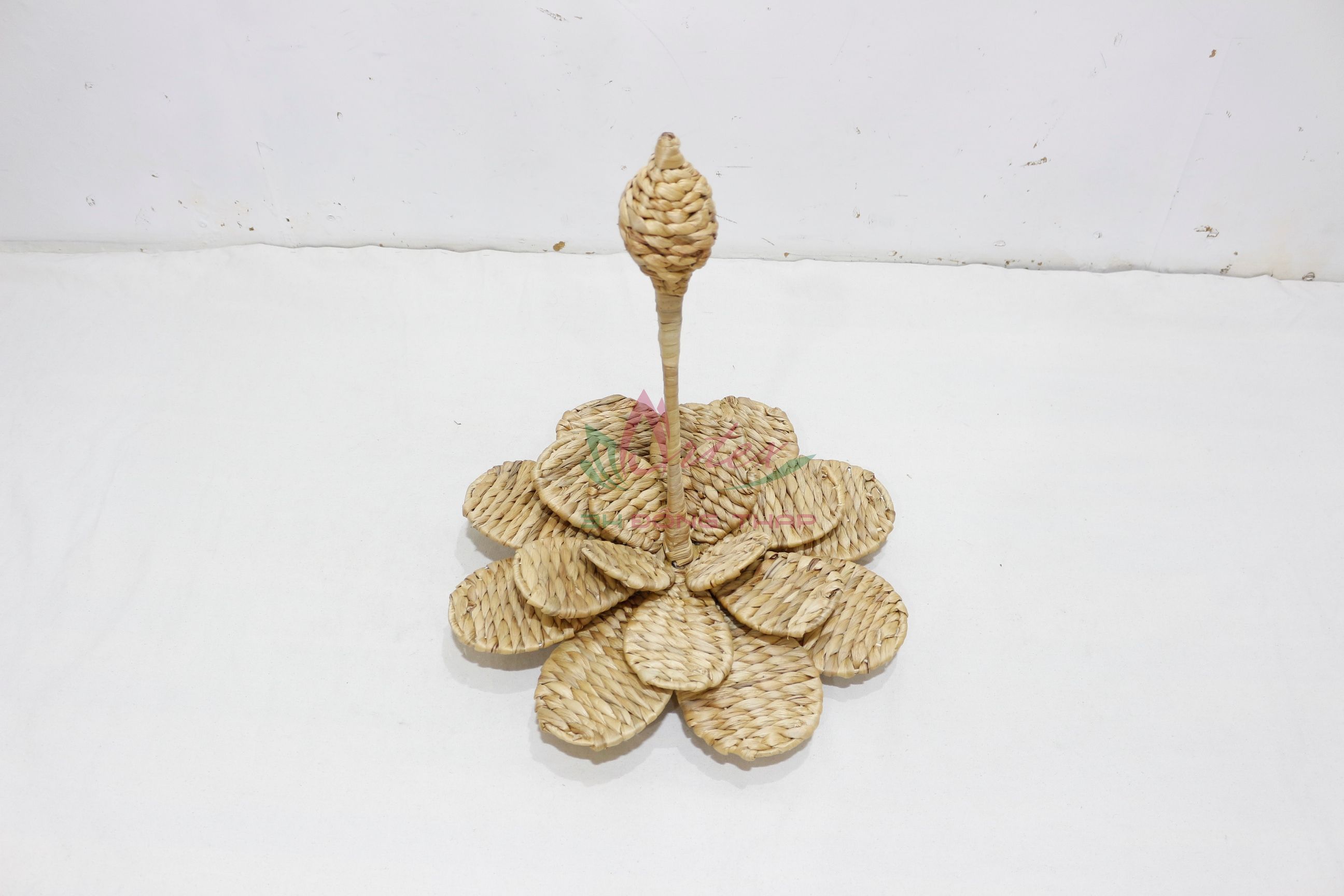 Water hyacinth home decor, lotus - shape, iron frame rice nut weave, natural color.