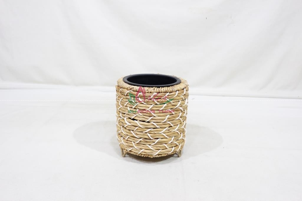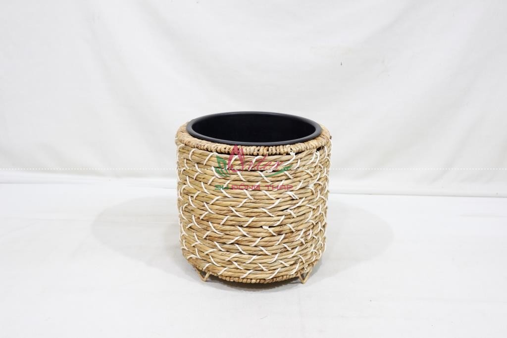 Water Hyacinth Planter Basket with Plastic Pot Insert – Handwoven Flower Pot-SD20594A-2MC