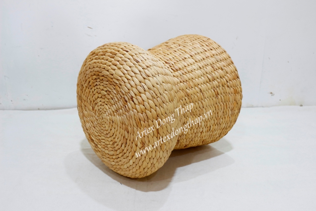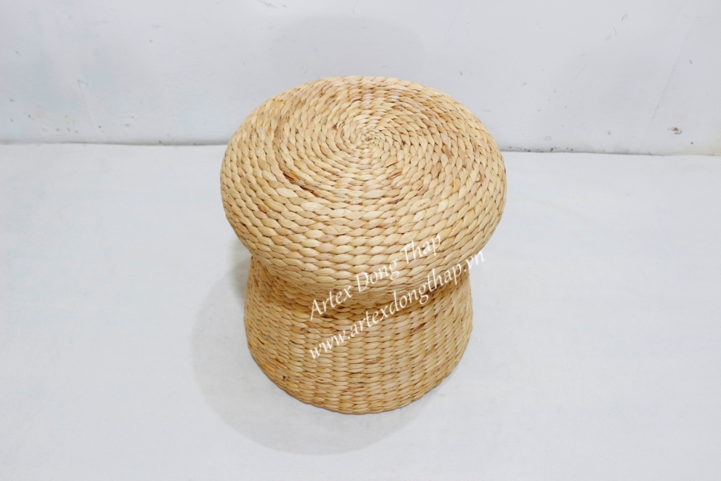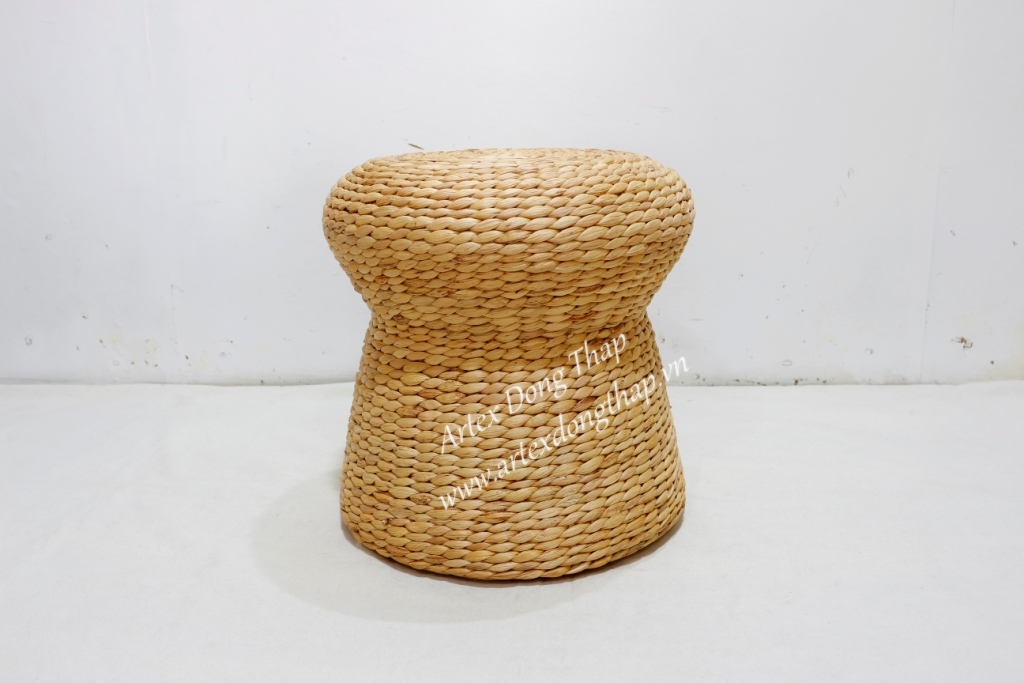 Description: Round water hyacinth stool, unframe, rice nut weave, natural color