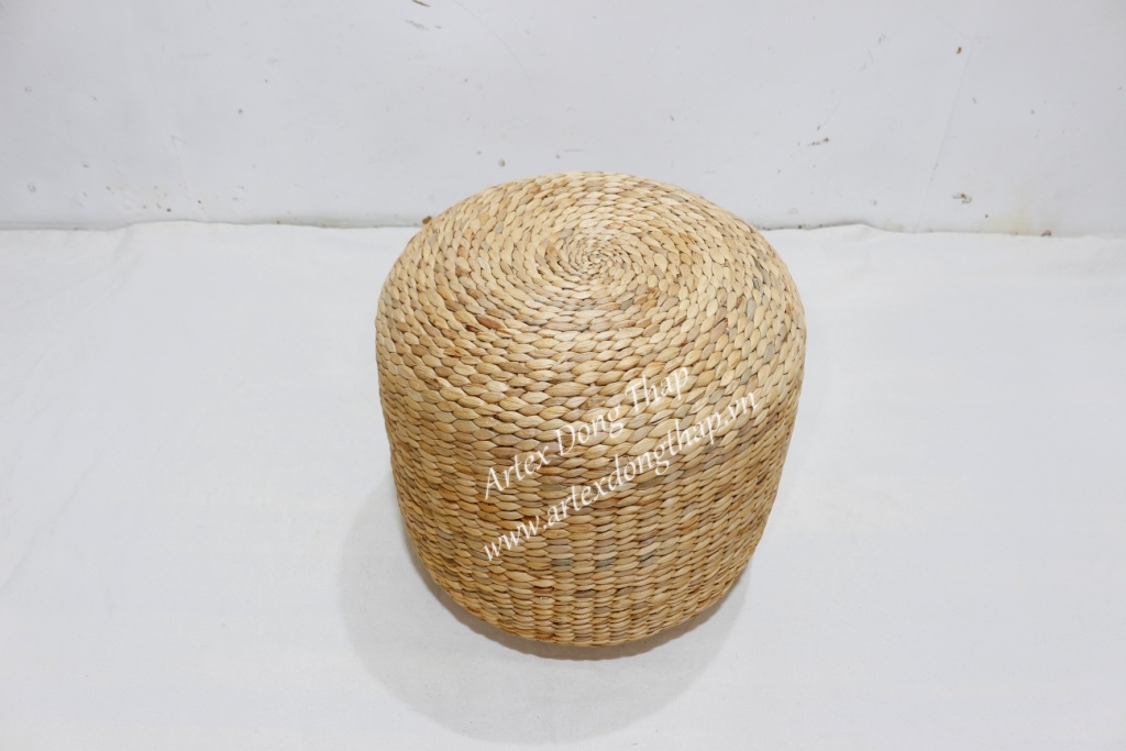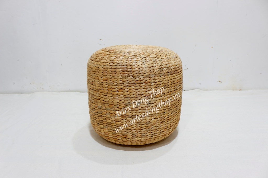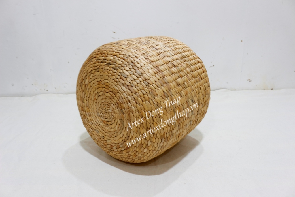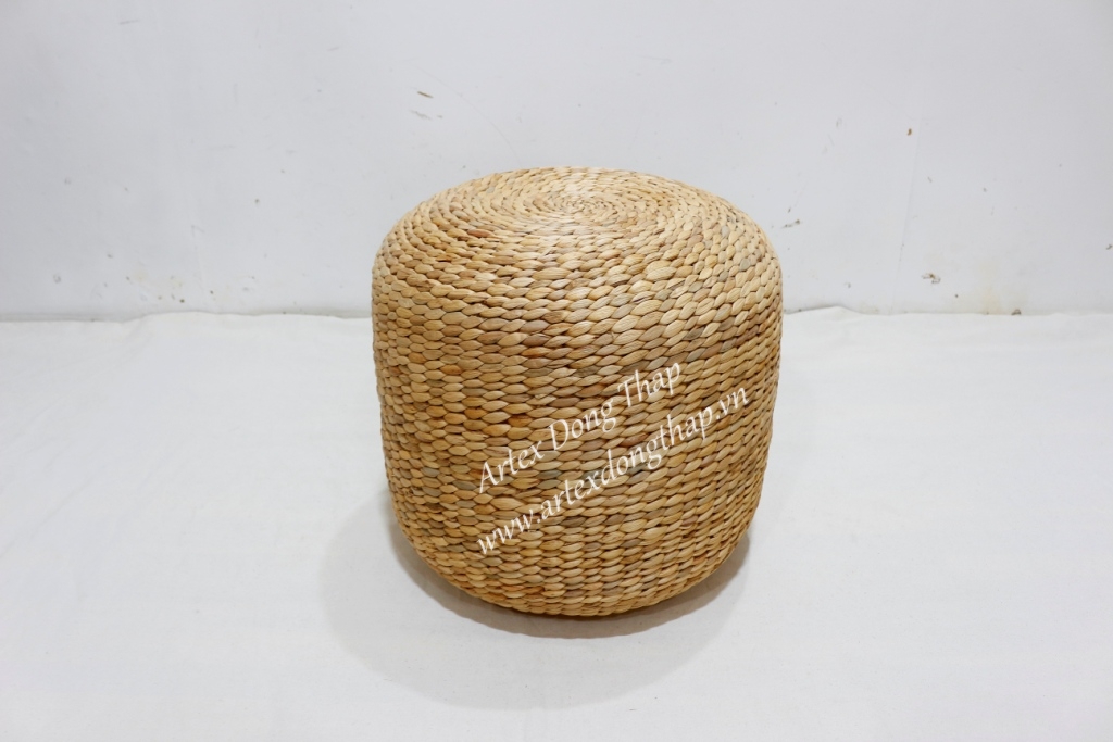 Description: Round water hyacinth stool, unframe, rice nut weave, natural color