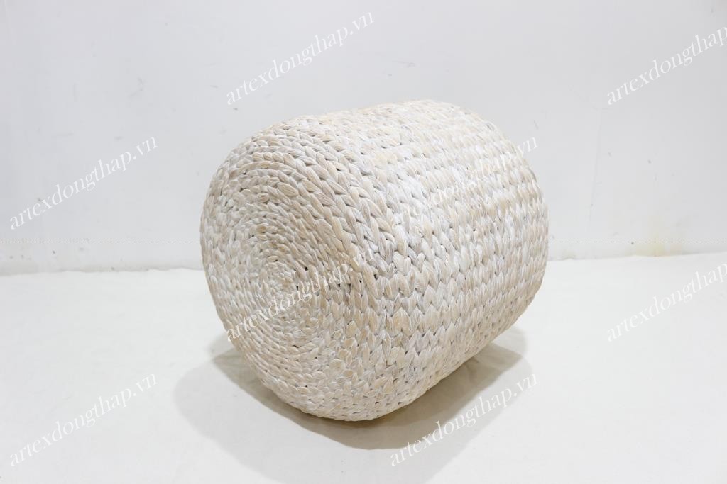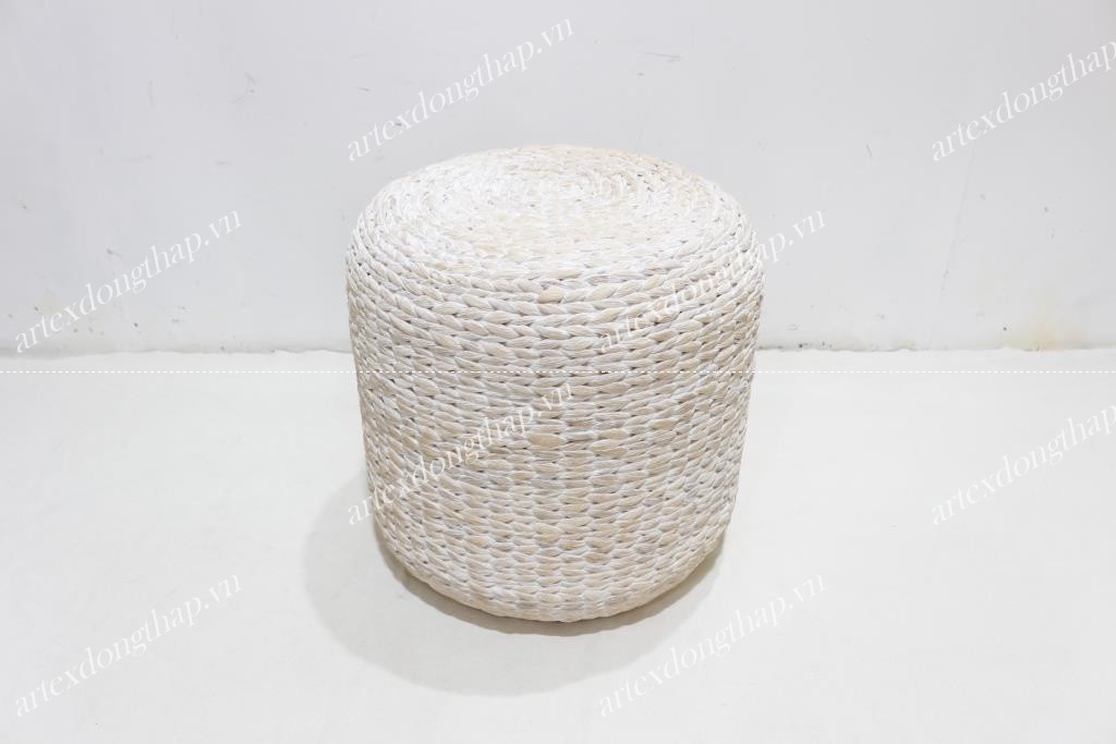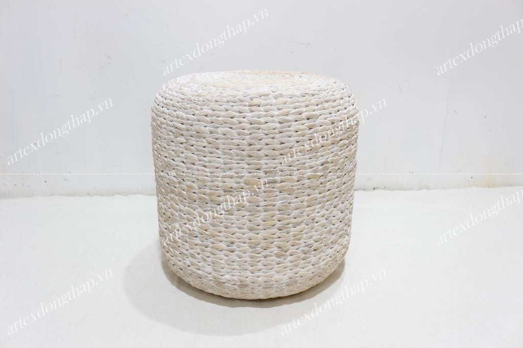 Description: Round water hyacinth stool, unframe, fish bone weave, wash white color