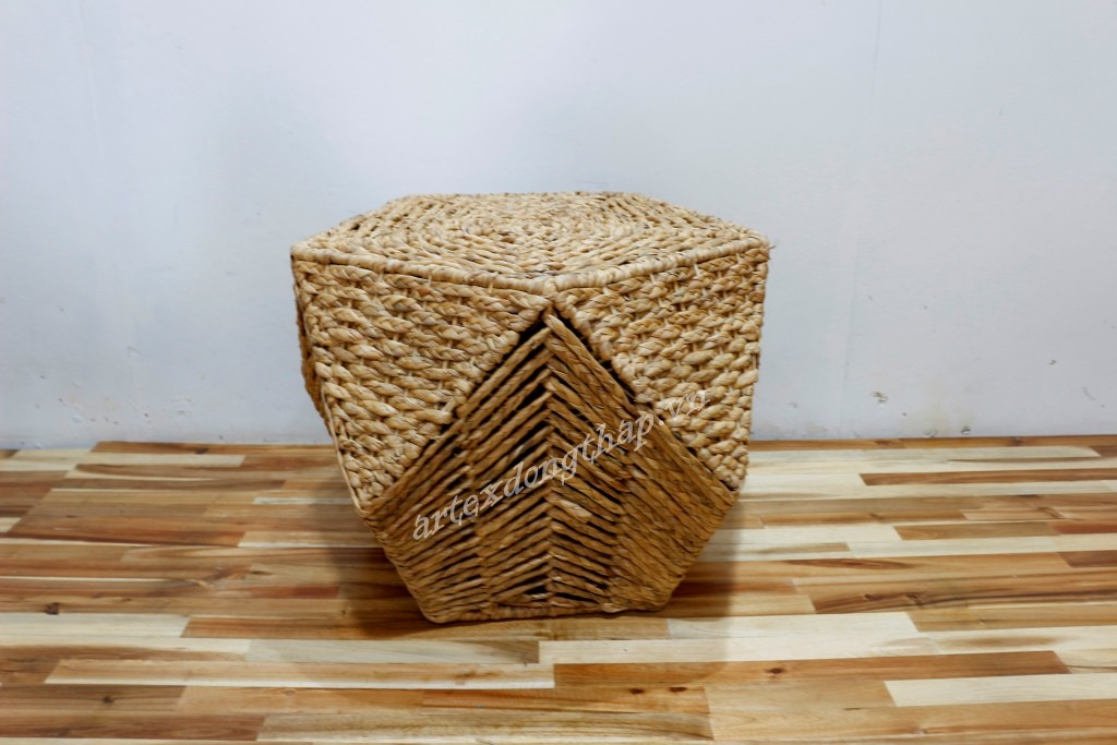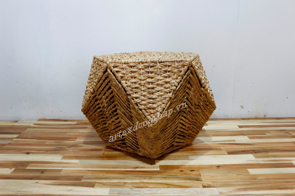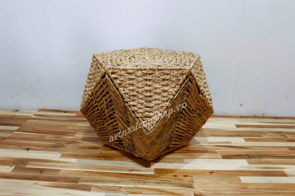 Water hyacinth coffee table, star shape, iron frame, open bottom, braided weave, natural color.