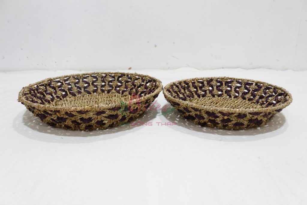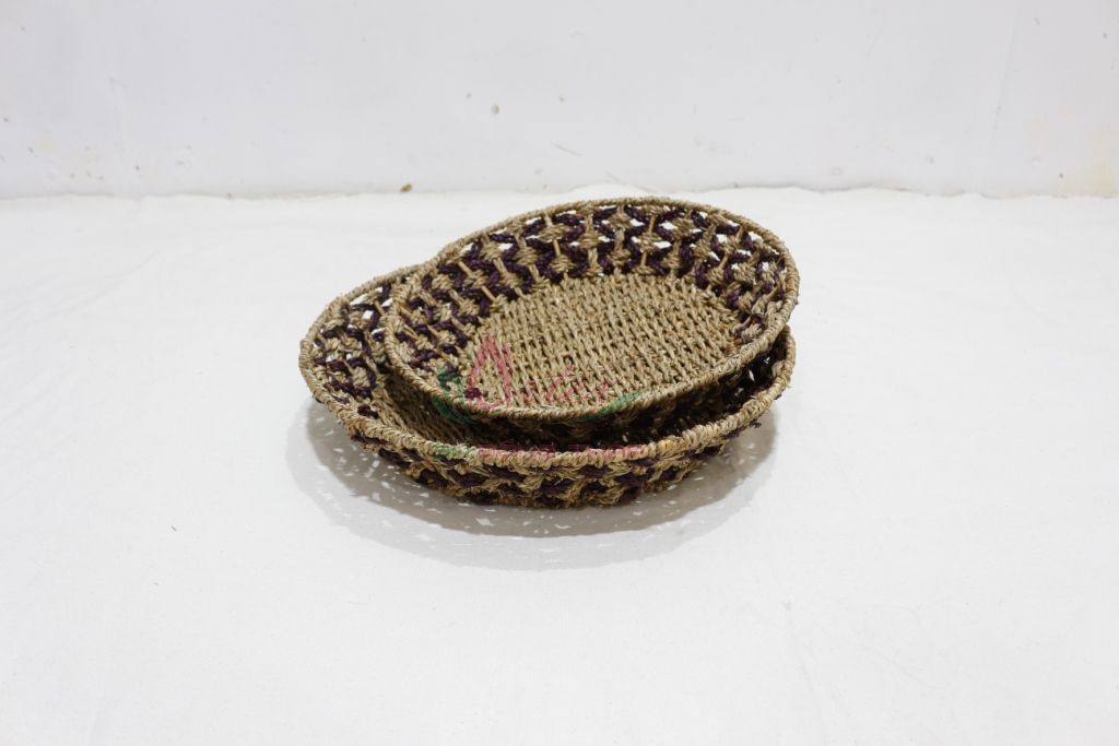 Set of 2 round seagrass trays, iron frame without handles, weave as picture, natural mix brown color