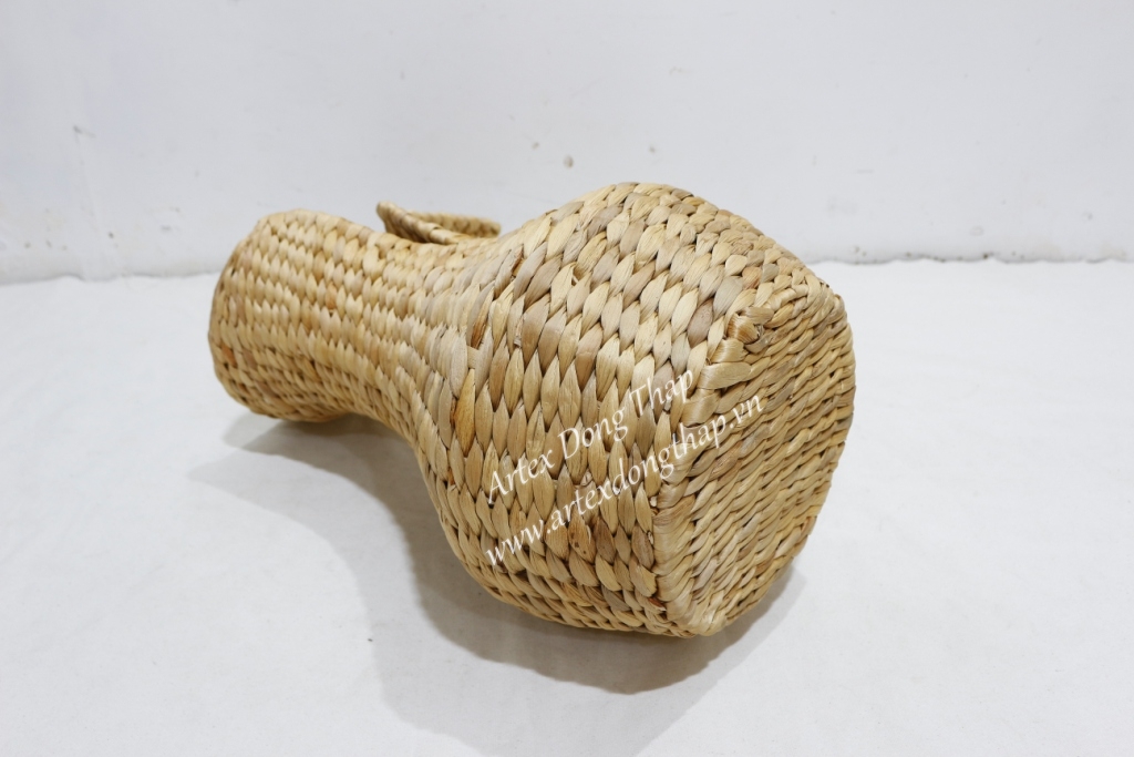Water hyacinth vase for home decor, iron frame, rice nut weave, natural color.