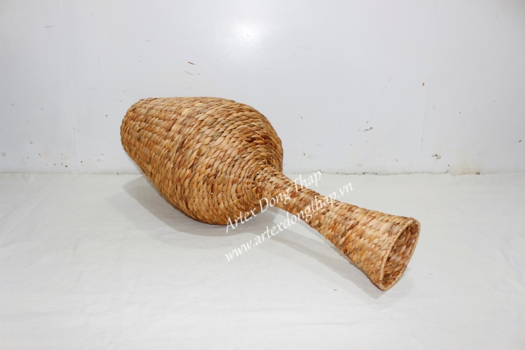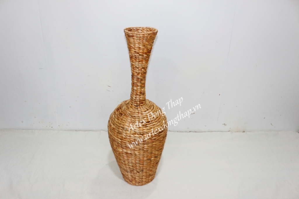 Water hyacinth vase for home decor, iron frame, rice nut weave, natural color.