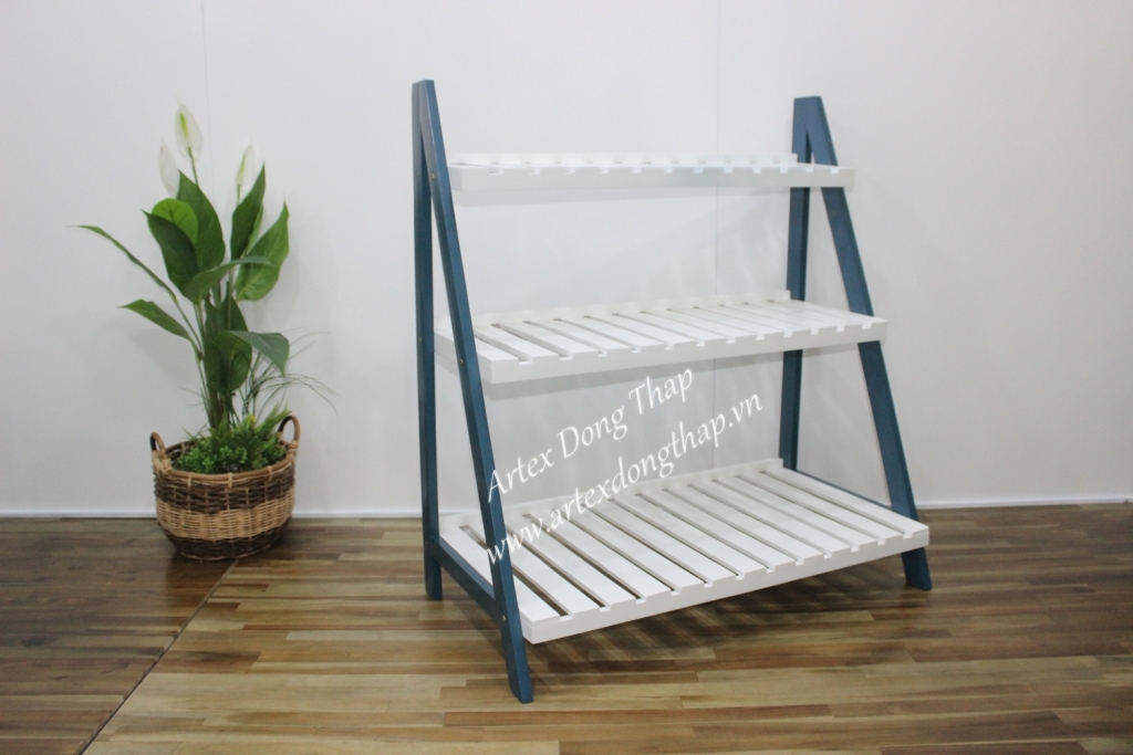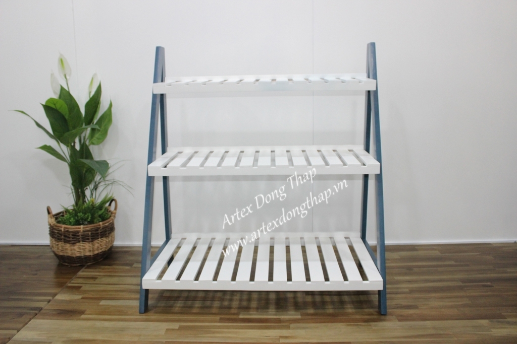 Rectangular wooden cabinet in grey mix white color, with 3 shelves.